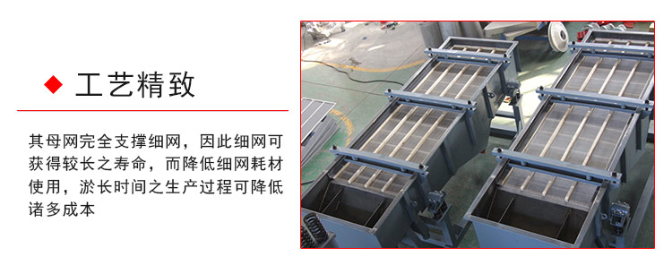 4.其母網完全支撐細網,因此細網可獲得較長之壽命,而降低細網耗材使用,淤長時間之生產過程可降低諸多成本。