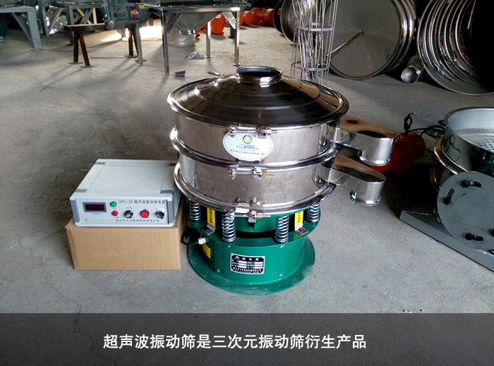 超聲波振動(dòng)篩是三次元振動(dòng)篩衍生產(chǎn)品,它是在普通的三次元振動(dòng)篩的篩網(wǎng)加裝引入一個(gè)低振幅,高頻率的超聲波振動(dòng)篩。此結(jié)構(gòu)的改動(dòng)很大程度上提高了其對微細(xì)粉的效率,并且還解決了物料因團(tuán)聚,靜電,強(qiáng)吸附性而導(dǎo)致的堵網(wǎng)等難題。且此振動(dòng)篩也能夠多層篩分。