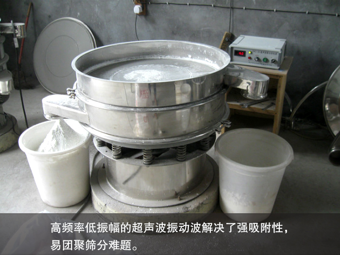 超聲波震動(dòng)篩是旋振篩的一種衍生產(chǎn)品,是將超聲波控制器于旋振篩有機(jī)結(jié)合在一起,在篩網(wǎng)上面疊加一個(gè)高頻率低振幅的超聲波振動(dòng)波,超微細(xì)粉體接受巨大的超聲波加速,使篩面上的物料始終保持懸浮狀態(tài),從而仰制黏附,摩擦,平降,楔入等堵網(wǎng)因素,從而解決了強(qiáng)吸附性,易團(tuán)聚,高靜電,高精細(xì),高密度,輕比重等篩分難題,使超微細(xì)粉篩分不再成為難事,特別適合高品質(zhì),精細(xì)粉體的用使用。